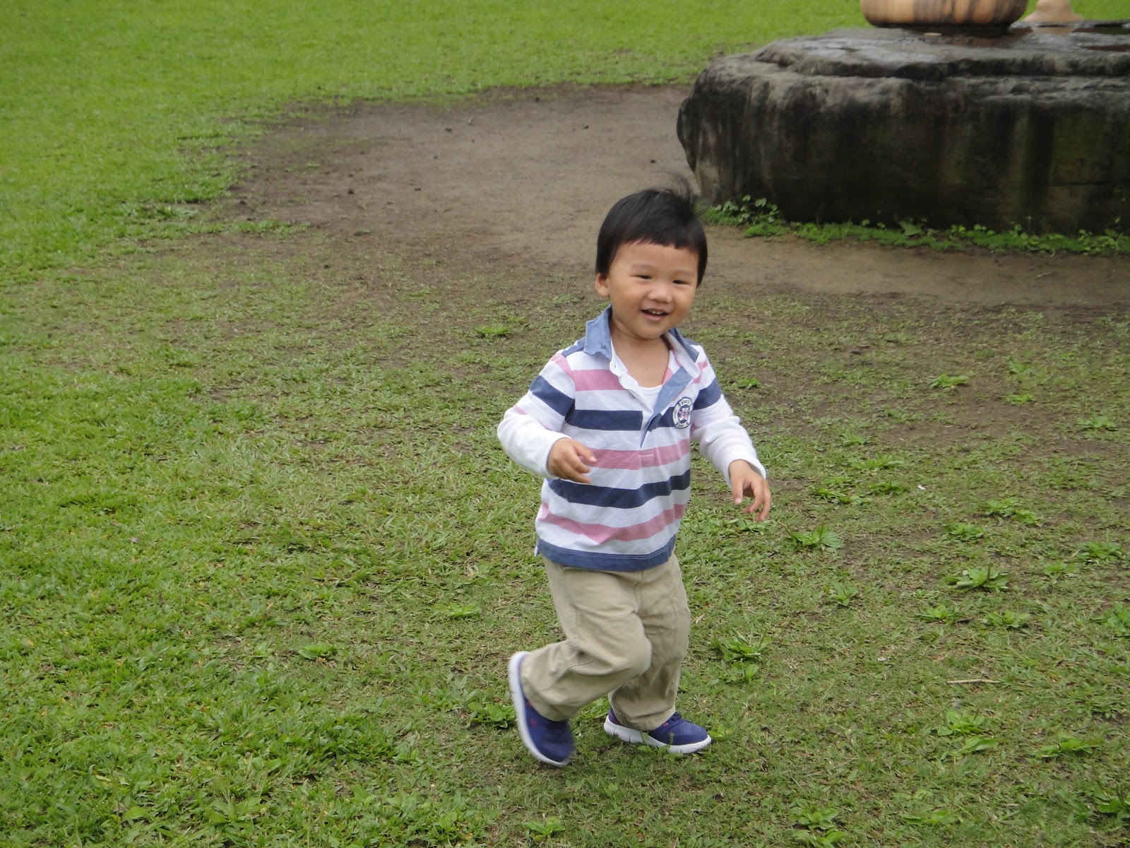 園區中間有一個大草坪,雖然沒帶任何玩具,但兩個小朋友一樣跑得很開心